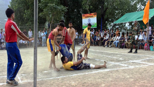 Players in action during final match of Kabaddi Tournament at Ramban.