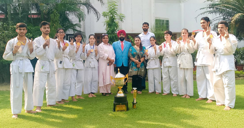 Players from J&K Blind and Para Judo Association posing for a group photograph with others after winning 3rd Visually Impaired Youth National Judo Championship.
