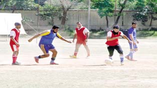 Players in action during a football match organised during ongoing Inter-Battalion Tournament at Jammu on Wednesday. -Excelsior/Rakesh By Daily Excelsior - April 18, 2013 Share FacebookTwitterWhatsAppPinterestLinkedinCopy URLTelegramEmailTumblrReddItPrintKoo Players in action during a football match organised during ongoing Inter-Battalion Tournament at Jammu on Wednesday. -Excelsior/Rakesh Follow our WhatsApp channel