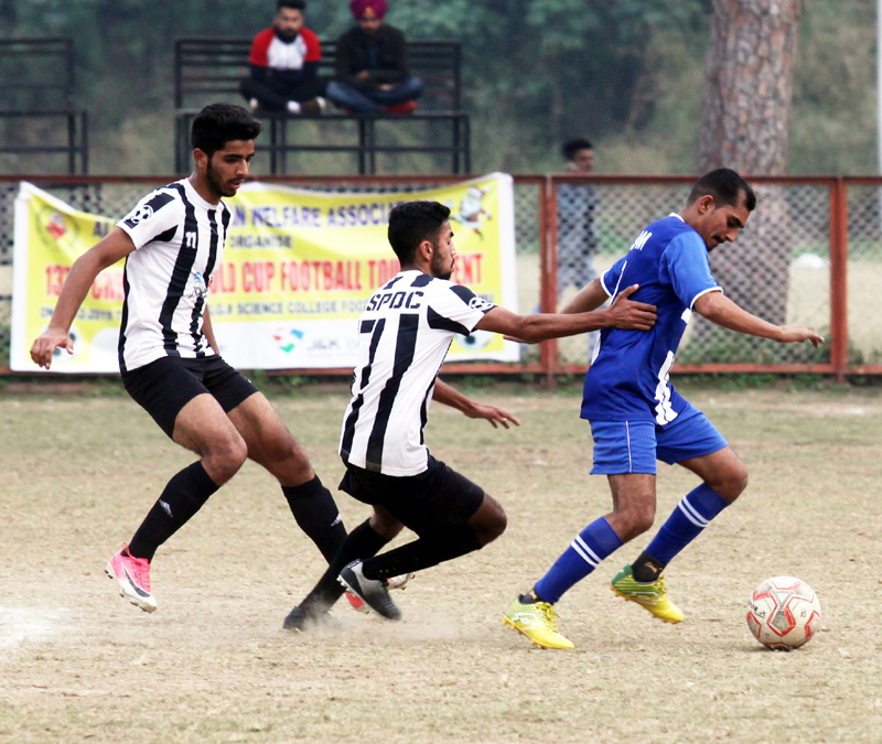 Players in action during a match of 13th Christmas Gold Cup Football Tournament in Jammu. -Excelsior/Rakesh By Daily Excelsior - December 11, 2019 Share FacebookTwitterWhatsAppPinterestLinkedinCopy URLTelegramEmailTumblrReddItPrintKoo Players in action during a match of 13th Christmas Gold Cup Football Tournament in Jammu. -Excelsior/Rakesh Players in action during a match of 13th Christmas Gold Cup Football Tournament in Jammu. -Excelsior/Rakesh Follow our WhatsApp channel