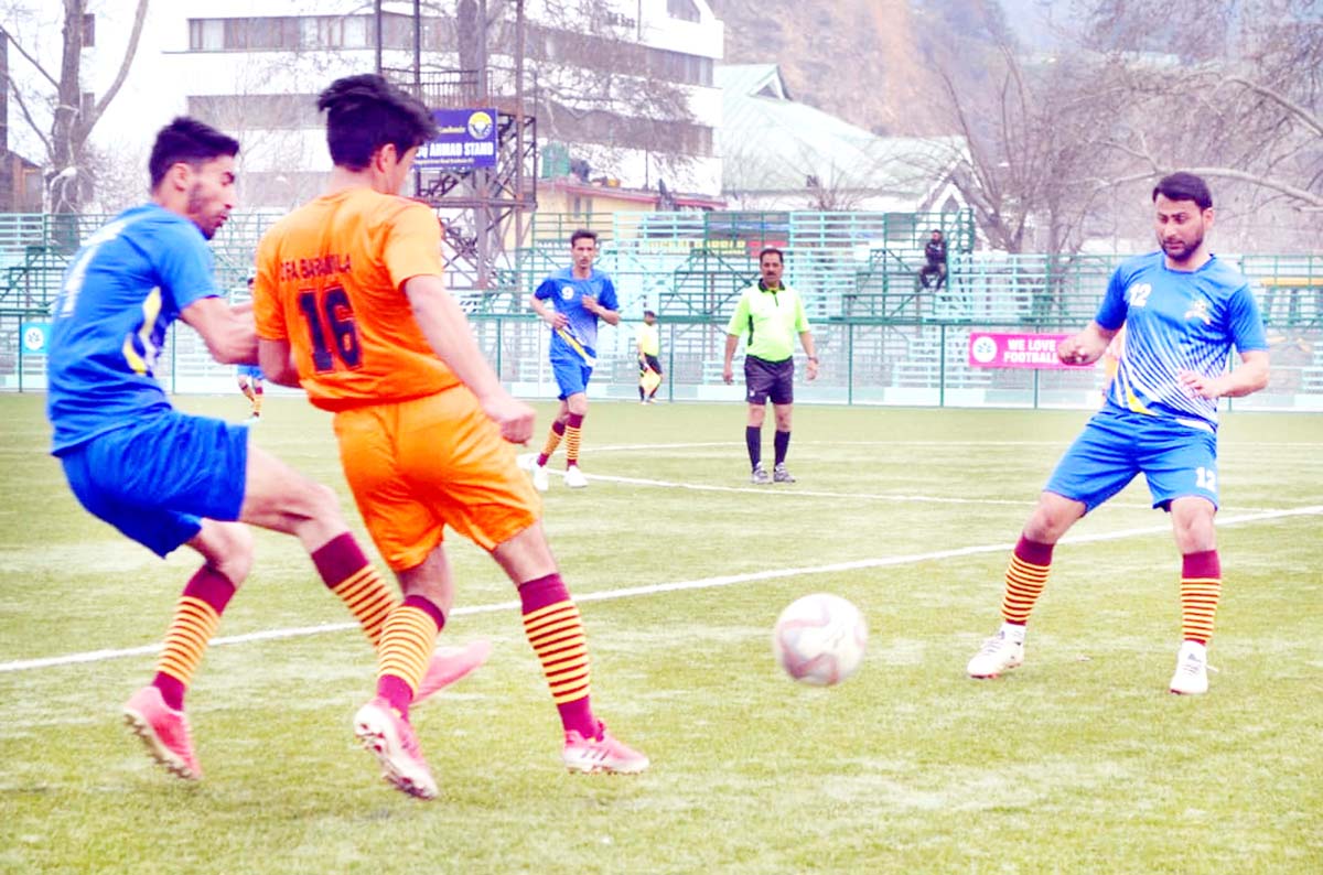 Players in action during a match of 26th State Football Championship on Thursday.