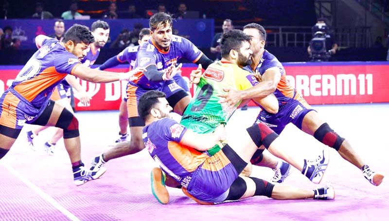 Players in action during a Pro Kabaddi League Match between Bengal Warriors and Patna Pirates in Chennai. By Daily Excelsior - August 22, 2019 Share FacebookTwitterWhatsAppPinterestLinkedinCopy URLTelegramEmailTumblrReddItPrintKoo Players in action during a Pro Kabaddi League Match between Bengal Warriors and Patna Pirates in Chennai. Players in action during a Pro Kabaddi League Match between Bengal Warriors and Patna Pirates in Chennai. Follow our WhatsApp channel