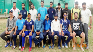 Players of Jammu Cricket Club posing alongwith Director Country Cricket Academy, Vikrant Sharma on Tuesday.