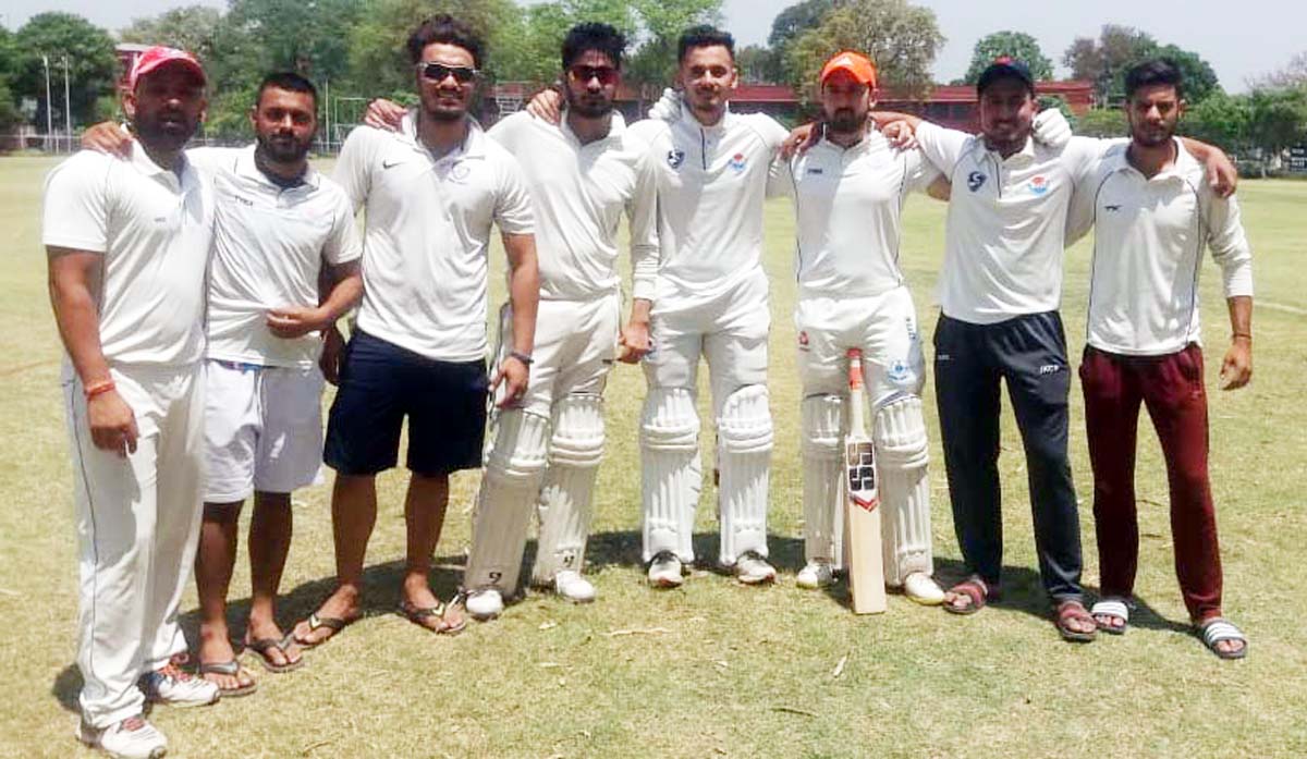Players of National Cricket Club posing for a group photograph after registering victory in Jammu on Friday.