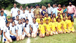 Players posing for a group photograph during inaugural ceremony of Regional Sports Meet at KV No-1, Udhampur.