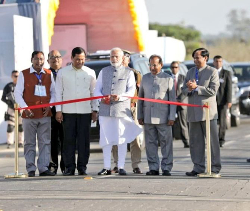 The Prime Minister, who reached Dibrugarh in the afternoon from New Delhi, flew directly to Bogibeel in a chopper and dedicated the 4.94-km-long double-decker bridge to the nation from the south bank of the river. After greeting people, standing on the foothold of his vehicle, Modi deboarded the car and walked a few metres on the bridge along with Assam Governor Jagdish Mukhi and Chief Minister Sarbananda Sonowal.