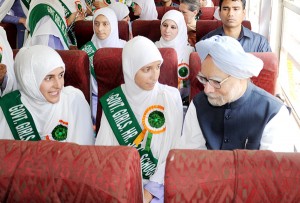 Prime Minister, Dr. Manmohan Singh travelling in the train from Banihal to Qazigund along with a group of school children on Wednesday.