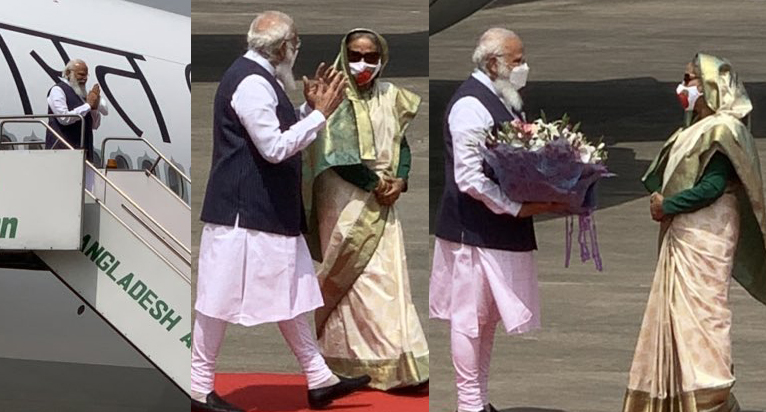He was welcomed by his Bangladeshi counterpart Sheikh Hasina at the airport.
