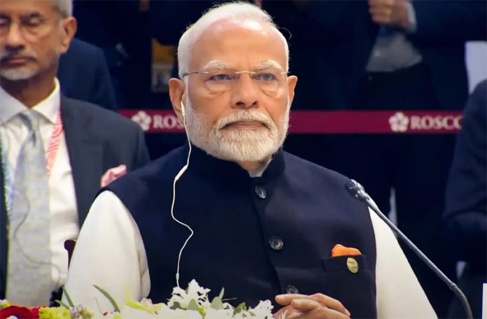 Highlighting India’s development journey, Modi said it is moving ahead with the mantra of “reform, perform and transform”.