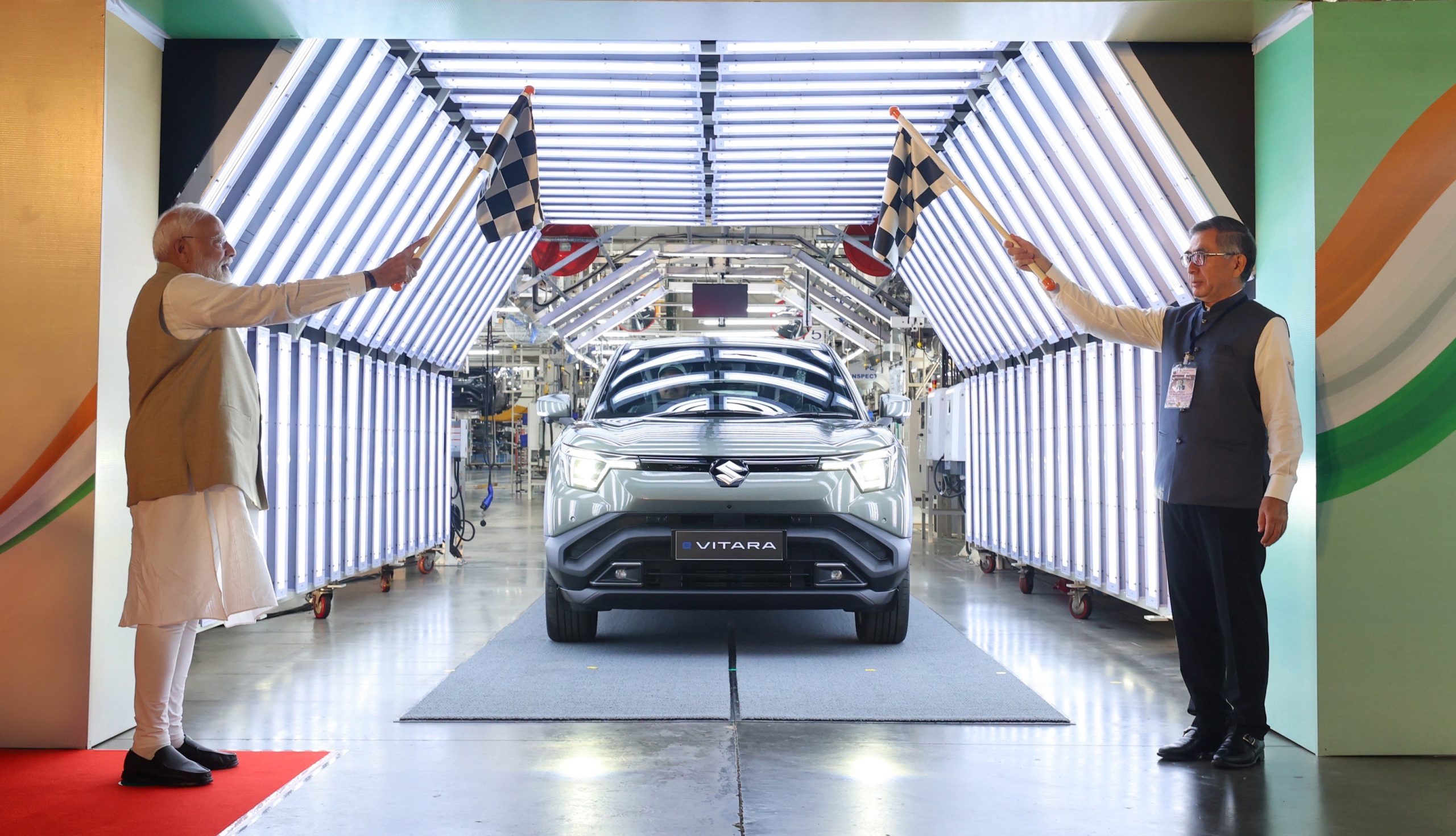 AHMEDABAD, Aug 26: Prime Minister Narendra Modi on Tuesday flagged off Maruti Suzuki’s first electric vehicle e-Vitara from the Hansalpur manufacturing facility in Gujarat. The made-in-India Maruti e-Vitara will be exported to more than 100 countries, including Japan.