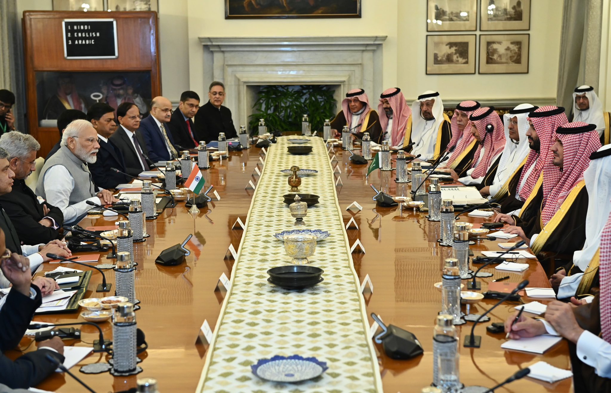 Ahead of the talks, the Crown Prince was accorded a ceremonial welcome at the forecourt of the Rashtrapati Bhavan.