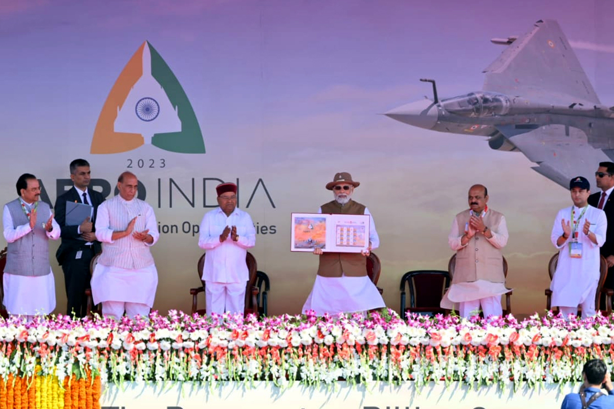 The Prime Minister viewed a majestic display of the Indian Air Force at Aero India Show 2023. He also released commemorative stamp of the event. (Agencies)