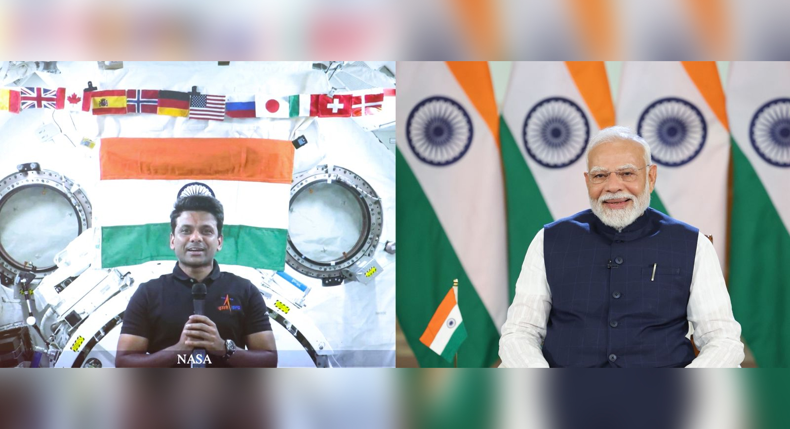 ‘Bharat Mata ki jai’ chant filled up the space station as the prime minister raised the slogan towards the end of the 18-minute conversation, which was reciprocated by Shukla.