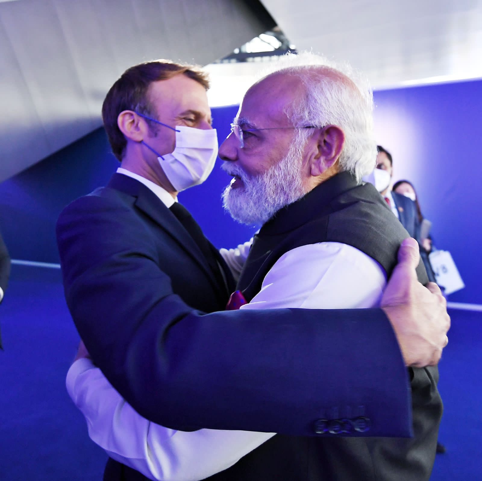 Mr. Modi, who is at the invitation of his Italian counterpart Mario Draghi, was accompanied by National Security Advisor Ajit Doval and External Affairs Minister S Jaishankar during his meeting with Mr. Macron.