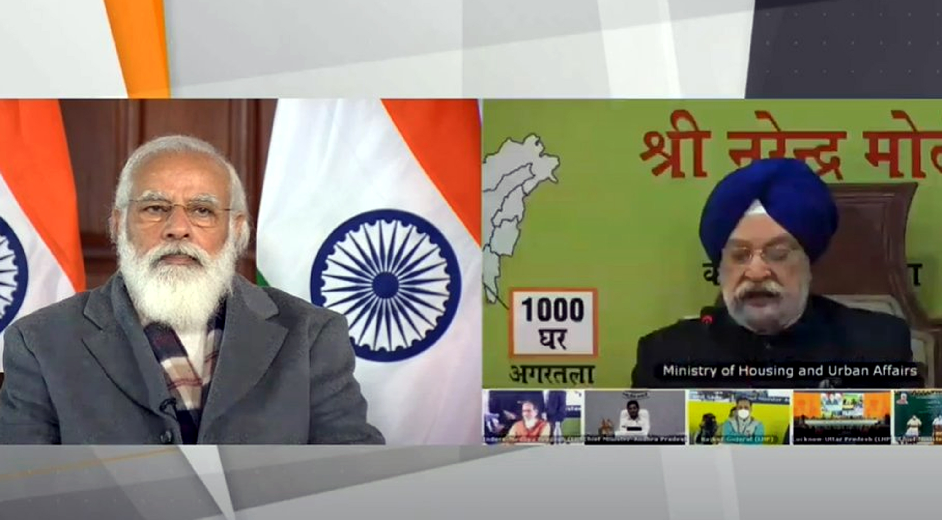 Besides the prime minister, the housing and urban affairs minister, chief ministers of Tripura, Jharkhand, Uttar Pradesh, Madhya Pradesh, Gujarat, Tamil Nadu and Andhra Pradesh were present on the occasion.