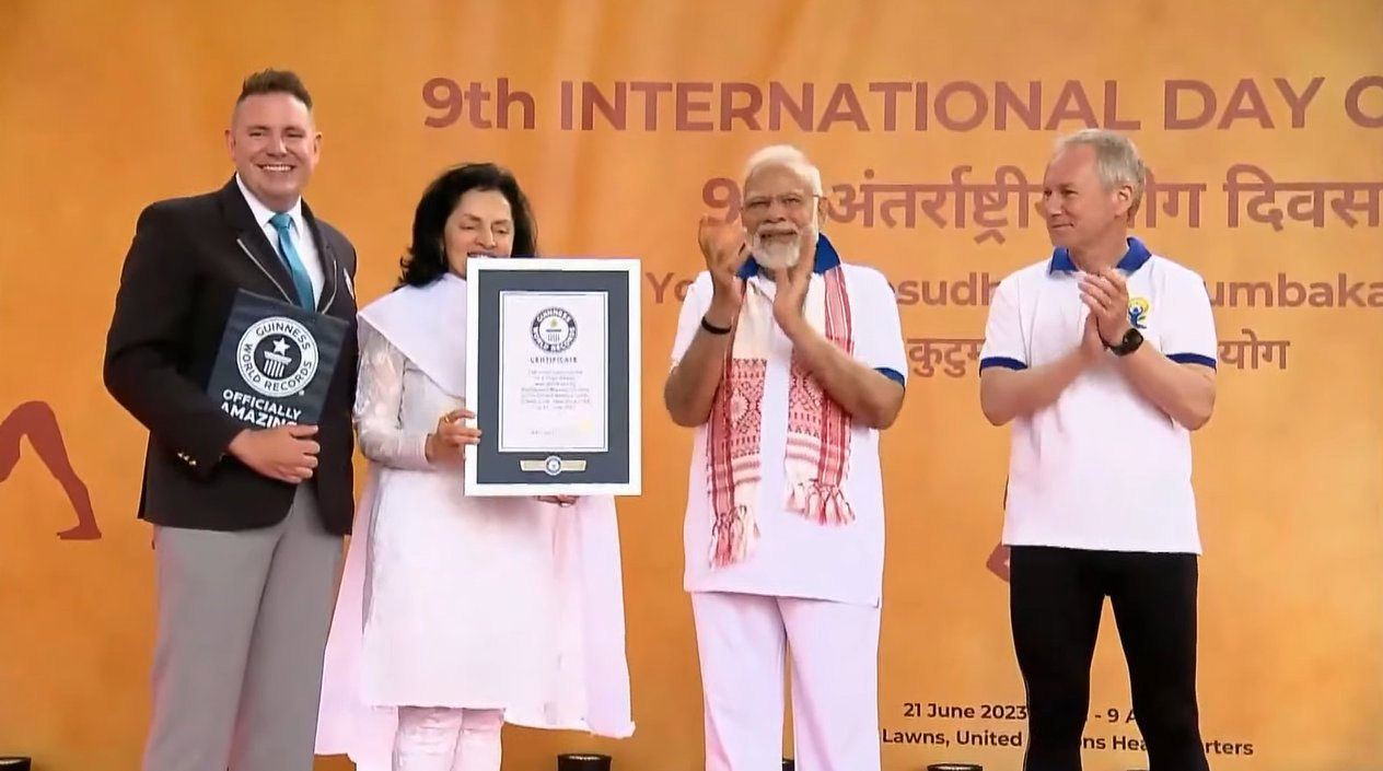 Under Prime Minister Modi’s guidance, the yoga celebration at the UN headquarters garnered global attention and acclaim by achieving the Guinness World Record for the highest number of nationalities represented in a single yoga session.