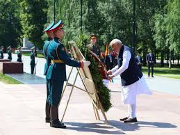 MOSCOW, July 9: Prime Minister Shri Narendra Modi, on a two-day visit to Russia, paid tribute at the ‘Tomb of the Unknown Soldier’ in Moscow on Tuesday.