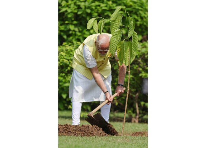 NEW DELHI, Sept 19: Prime Minister Narendra Modi on Friday planted a Kadamb sapling, a gift to him from British King Charles III, on his 75th birthday, at his official residence.