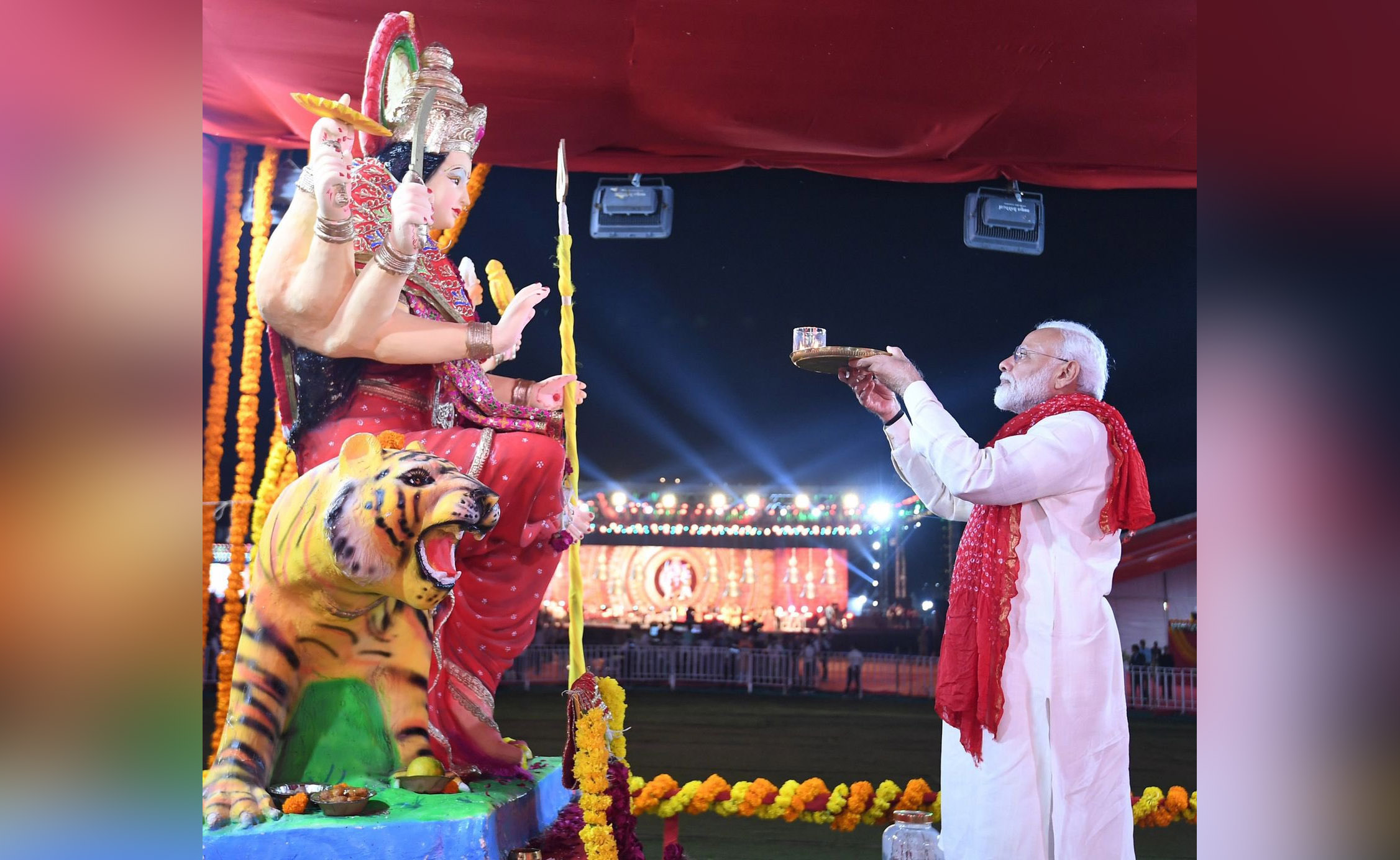 The PM shared a picture in which he can be seen praying before Maa Durga.