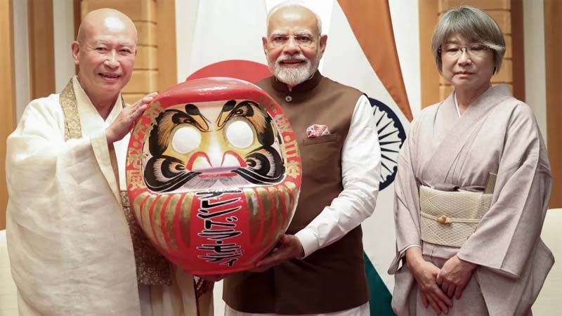 The prime minister was presented a Daruma doll by Rev Seishi Hirose, Chief Priest of the Shorinzan Daruma-Ji temple, Takasaki-Gunma, the Ministry of External Affairs (MEA) said in a press release.