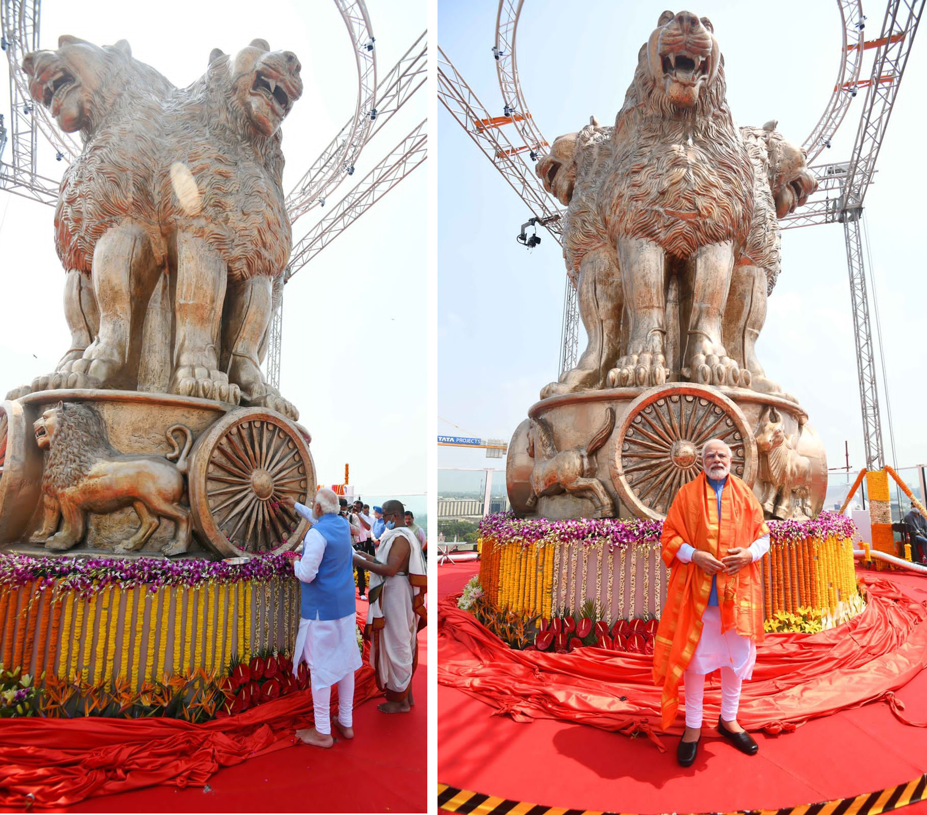 The concept sketch and process of casting of the national emblem on the roof of the new Parliament building has gone through eight different stages of preparation from clay modelling and computer graphics to bronze casting and polishing, they said.