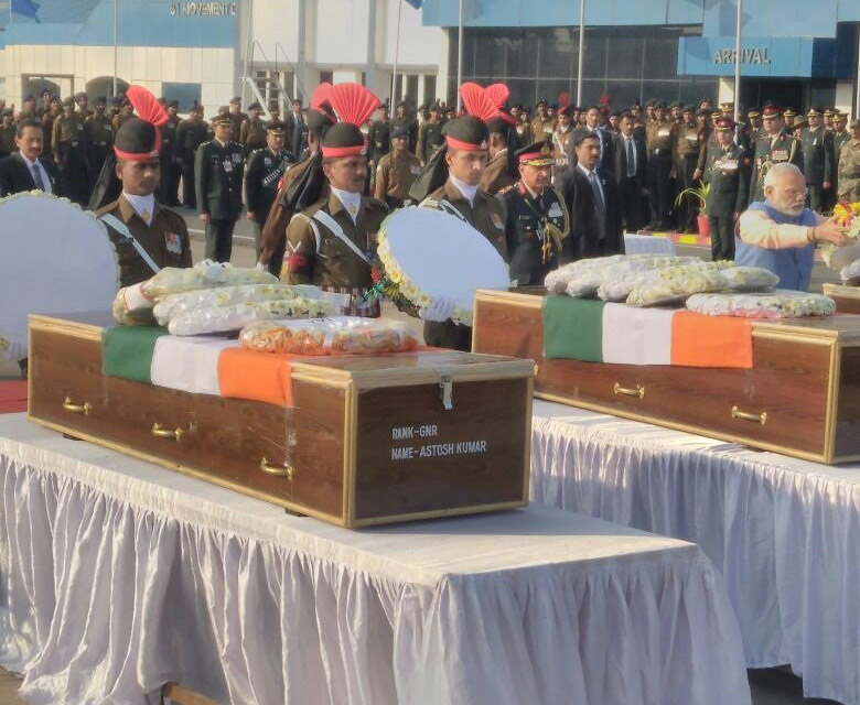 NEW DELHI: Prime Minister Narendra Modi today paid homage to four army men, including a Major, who were killed in two separate encounters in Kashmir yesterday.
