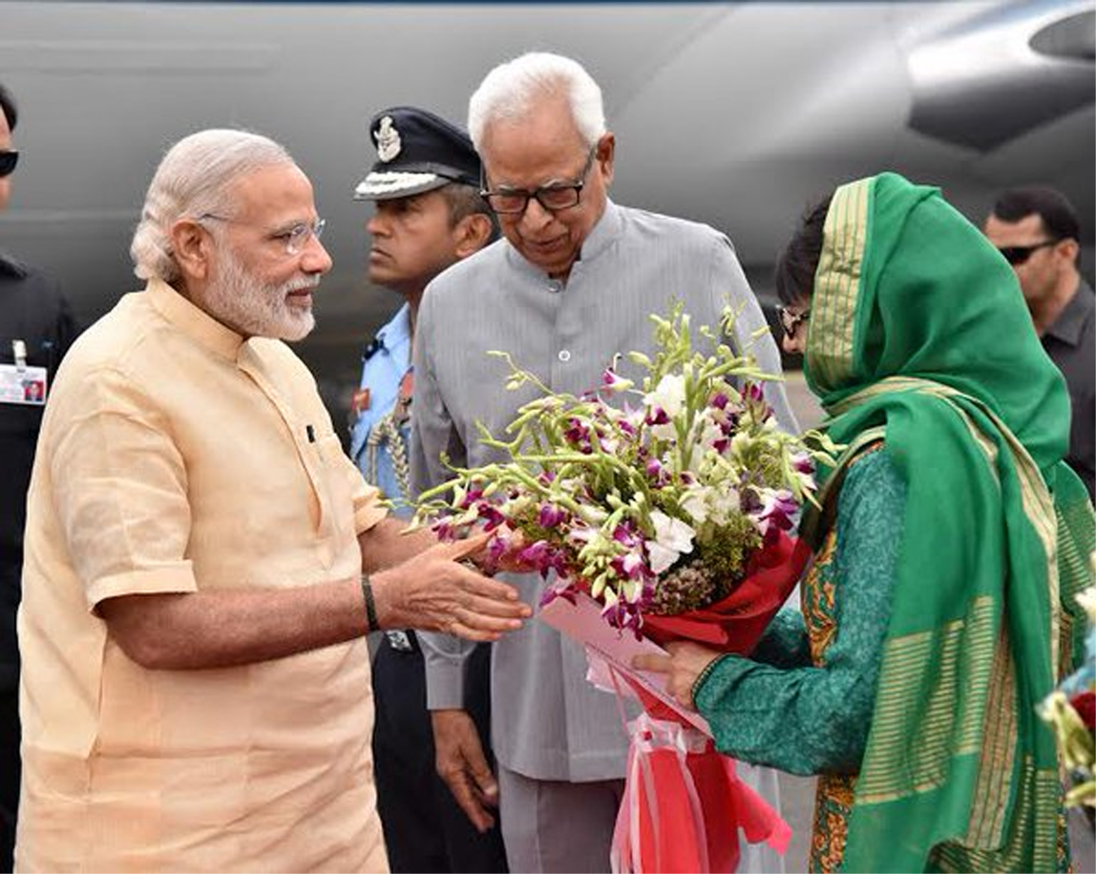 PM Shri Narendra Modi being welcomed by the CM of J&K Ms Mehbooba Mufti at Jammu Airport By Daily Excelsior - April 19, 2016 Share FacebookTwitterWhatsAppPinterestLinkedinCopy URLTelegramEmailTumblrReddItPrintKoo Follow our WhatsApp channel