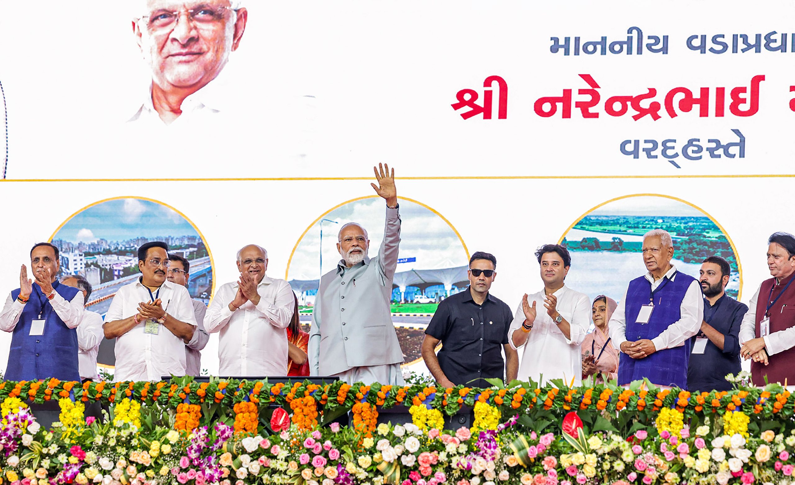 From the stage, the PM inaugurated various development projects, including packages 8 and 9 of the Saurashtra Narmada Avtaran Irrigation (SAUNI) Yojana.