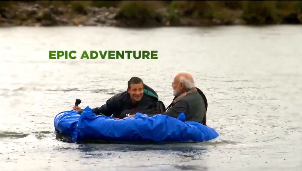 Forty-five-year-old Edward Michael Grylls (OBE), better known as Bear Grylls, on his Twitter handle wrote that “ people across 180 countries will get to see the unknown side of PM @narendramodi as he ventures into Indian wilderness to create awareness about animal conservation & environmental change. Catch Man Vs Wild with PM Modi @DiscoveryIN on August 12 @ 9 pm. #PMModionDiscovery.”