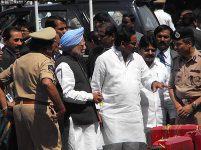 Dr Singh also held a review meeting with Andhra Pradesh Governor E S L Narasimhan and Chief Minister N Kiran Kumar Reddy on the steps taken by the State Government after the blasts before leaving for New Delhi this afternoon.