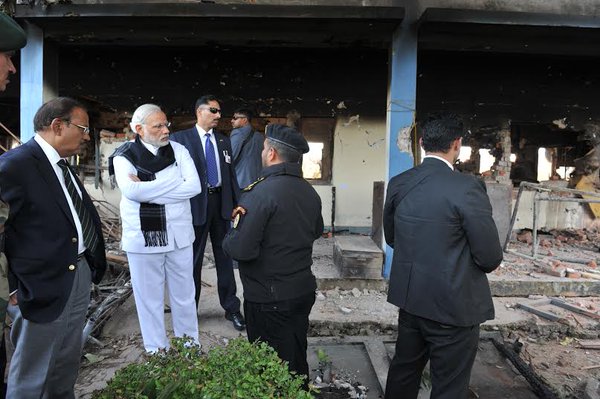 PATHANKOT: Prime Minister Narendra Modi today visited the strategically important IAF base here and reviewed the situation with the Air Force chief and other top officials in the aftermath of last Saturday’s brazen attack by suspected Pakistani terrorists.