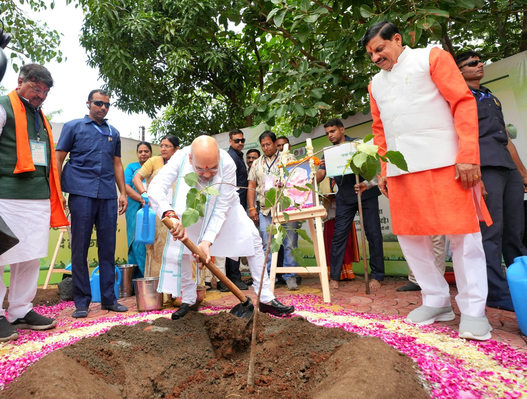 Indore, Jul 14: Union Home Minister Amit Shah on Sunday took part in a drive in Indore in Madhya Pradesh, which aims to a create a world record of planting 11 lakh saplings in a single day, and asserted the ‘Ek Ped Maa Ke Naam’ campaign launched by Prime Minister Narendra Modi was an apt reply to challenges of climate change.
