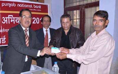 Excelsior Correspondent JAMMU, Nov 24: Punjab National Bank (PNB) today organised a function in coordination with Agriculture Department, at Arnia to disburse Kissan Credit Cards (KCCs). The function was inaugurated by Deputy General Manager, Circle Head, J&K Operations, Ashok Gupta, accompanied by Agriculture Extension Officer, Bishnah, Dr Rakesh Khajuria. Over 120 KCCs were distributed to the farmers on the occasion. In his welcome address, Gupta gave broader outline of KCC Scheme aiming at providing adequate and timely support from the banking system to the farmers. He added that the scheme would be beneficial to the farmers for boosting their agriculture activities and help them in meeting timely short term credit requirements for cultivation of crops, post harvest expenses and profitable marketing of their produce. Encouraging the farmers to diversify into other allied agro based activities like horticulture and floriculture, he assured them all possible financial support. Dr Rakesh Khajuria appreciated the role of PNB in reaching out to people and farmer community in particular, in rural and far-flung areas. He urged the farmers to avail the maximum benefits of the KCC scheme to improve their economic conditions. District Coordinator, PNB, SS Chib, Senior Manager, Arnia branch, JS Saini, Rakesh Kumar, large number of beneficiaries and staff members of the Bank were present on the occasion.