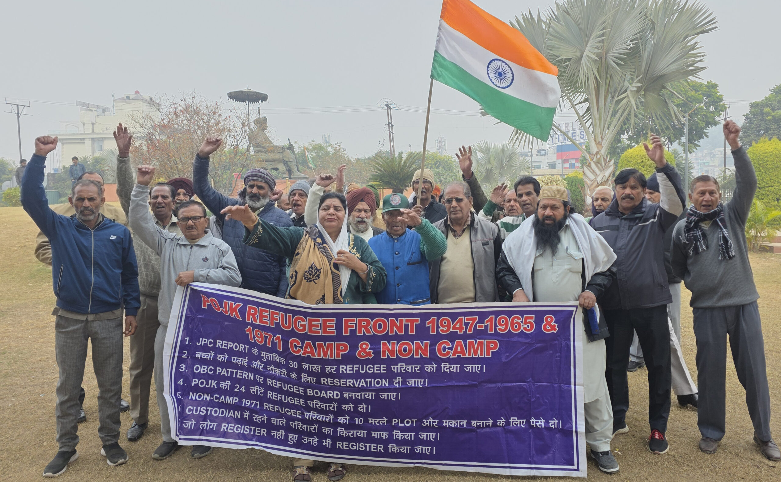 A large number of displaced persons, under the banner of POJK DPs’ Front 1947, 1965 and 1971 and (Non Camp) led by its president, Capt (Retd) Yudhvir Singh Chib assembled at Maharaja Hari Singh Park in Jammu today and started protest demonstration. They were demanding that DPs be given compensation @ Rs 30 lakh per family as recommended by the Joint Parliamentary Committee. More over, pending amount of Rs 24.50 lakhs should also be paid. He said Rs 5.50 lakh per family was first installment of the PM package.