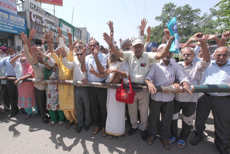 A large number of DPs led by Capt (Retd) Yudhvir Singh Chib, under the banner of PoJK DPs Front 1947, 1965, 1971 and Non Camp-71 assembled near Press Club Jammu today during the day and held protest demonstration. They were shouting slogans in favour of their demands and also against the J&K Relief authorities. They pointed out that after long struggle, Prime Minister Modi released Rs 2000 crore relief package in favour of PoJK refugees/DPs but the authorities in J&K have failed to disburse the same even after six years.