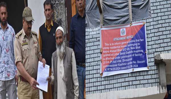 Police on Thursday attached the property of an alleged terror associate in Anantnag district.