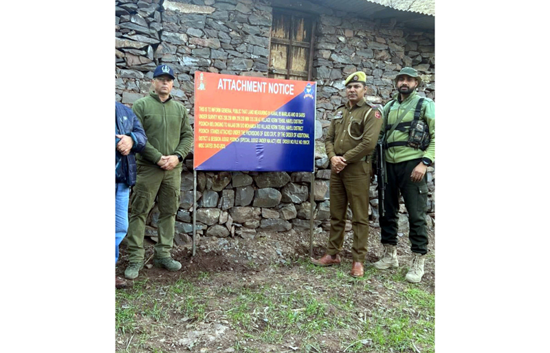 JAMMU, Mar 2: Poonch police today attached properties of three local terrorists of Poonch operating from Pakistan and Pakistan occupied Jammu Kashmir (PoJK) spread over a total of 14.8 kanals of land and valued at Rs 28 lakh.