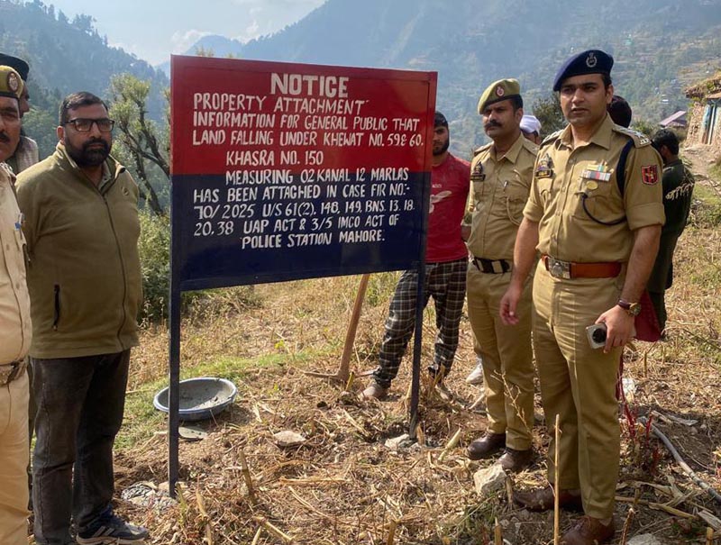 As part of this decisive action, 3 kanals and 6 marlas of land, falling under khasra numbers 138 and 150 at Sildhar in Mahore, were attached under Section 25 of the Unlawful Activities (Prevention) Act [UA(P)A].