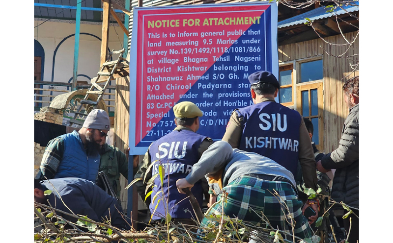 Properties of the terrorists attached by the SIU Kishtwar include land which was in their possession. The attachment orders were executed by the SIU under tight security arrangements during the day today.