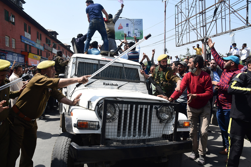 Srinagar, Mar 31: Police today foiled the protest march of casual workers and detained at least a dozen of them after they attempted to march towards the Clock Tower (Ganta Ghar) to press for their demands.