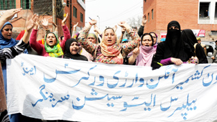 SRINAGAR, Mar 26: Dozens of Anganwadi workers of Kashmir province today protested against the Government for failure to enhance their salary, status of Government employees, promotion of senior Anganwadi workers to supervisors and grant of SRO 144 in case of death of employee.