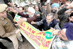 JAMMU, Mar 24: Police today foiled the bid of J&K SRTC voluntary retired employees to take out a procession towards Civil Secretariat from Press Club here in support of their long pending demands and release of pending dues.