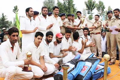 Trophies to winners and runners-up teams, man of the series, man of the match and sports kits provided by Abdul Gani Mir IGP Kashmir were distributed among various cricket clubs on the occasion. DIG South Kashmir, Vijay Kumar was the chief guest who distributed cricket kits and man of the match certificates on the occasion.