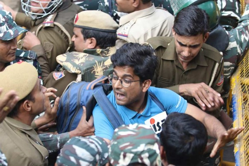 The police detained about 100 protestors, including JNUSU president Aishe Ghosh, secretary Satish Chandra Yadav and former JNUSU president N Sai Balaji.