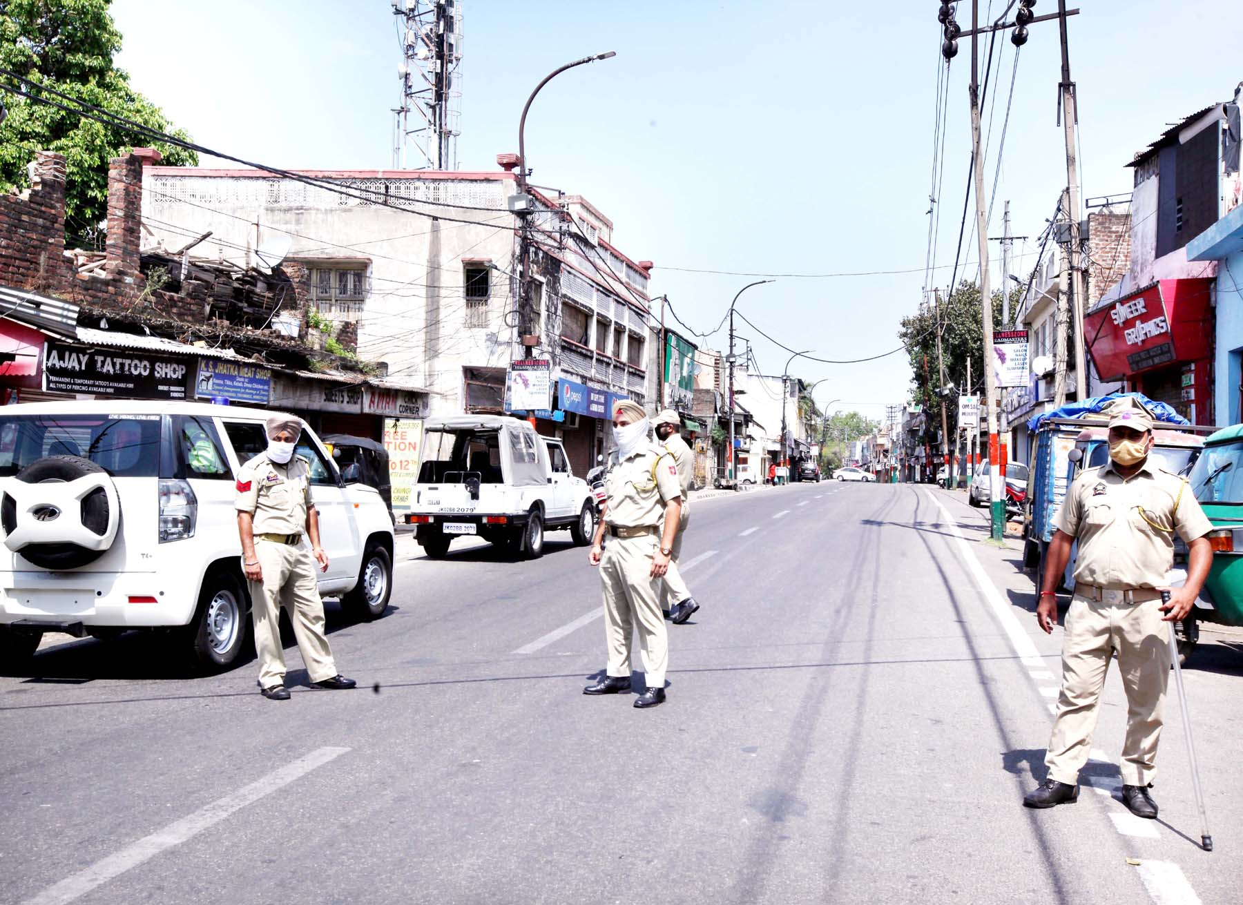 Police restrict movement in New Plots area of Jammu which has been declared as Containment Zone after a Corona positive case. -Excelsior/Rakesh