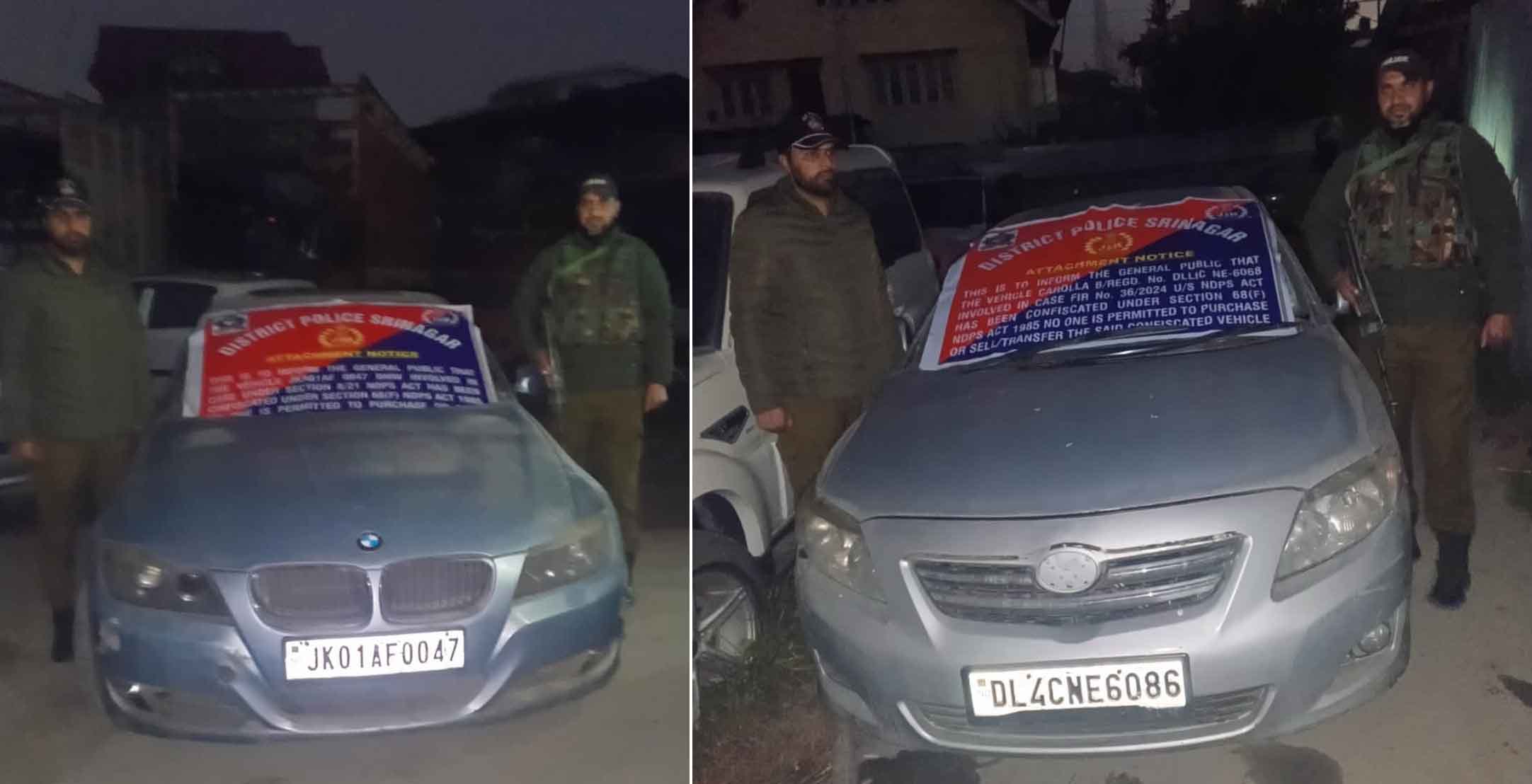 Srinagar Police on Thursday said that it has seized two vehicles Corolla and BMW in case FIR No. 36/2024 u/s 8/21 NDPS Act of Police Station Chanapora from the accused person identified as Mudasir Ahmad Wani, a resident of Stadium Colony, Chanapora.