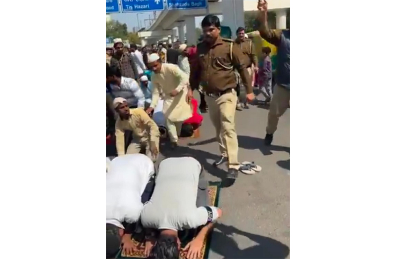 NEW DELHI, Mar 8 : A sub-inspector of the Delhi Police shoved and kicked a few people offering namaz on a road in north Delhi’s Inderlok area on Friday, leading to a protest by hundreds of locals against the force, which suspended the official with immediate effect.