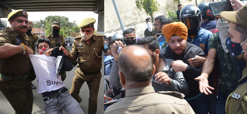 Later, other aspirants assembled outside Police Lines Jammu and staged a vociferous protest against the police. They demanded to release all the detainees.