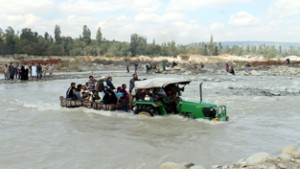 Srinagar, Sept 24: Upholding the tenets of humanity, a policeman in south Kashmir’s Shopian district volunteered a tractor for general public to facilitate their crossing of Ranbi Ara stream in absence of a bridge and diversion.