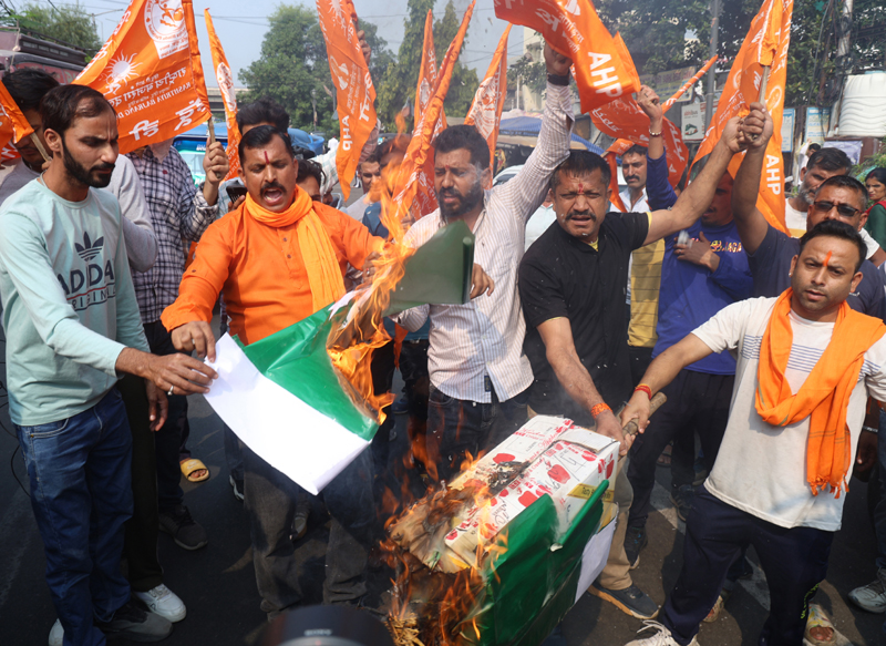 Led by the Manish Sahni, president of Shiv Sena (UBT) J&K, Shiv Sainiks gathered at Indira Chowk in Jammu and burnt the effigy of Pakistan and TRF, terming the killing of 7 innocent and unarmed people by terrorists in Ganderbal as a cowardly act. Sahni said that the series of target killings in Jammu and Kashmir is not stopping. He demanded strong military action and surgical strikes on the hideouts and launching pads of terrorists in the border of Pakistan, which is running a factory of terrorism.